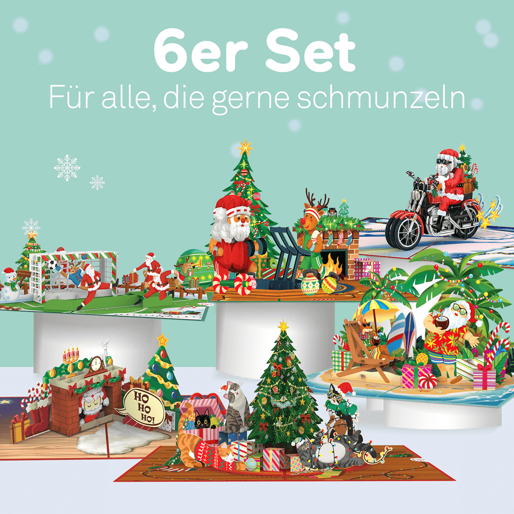 6er Set Pop-Up Karten "Lustige Weihnachten"